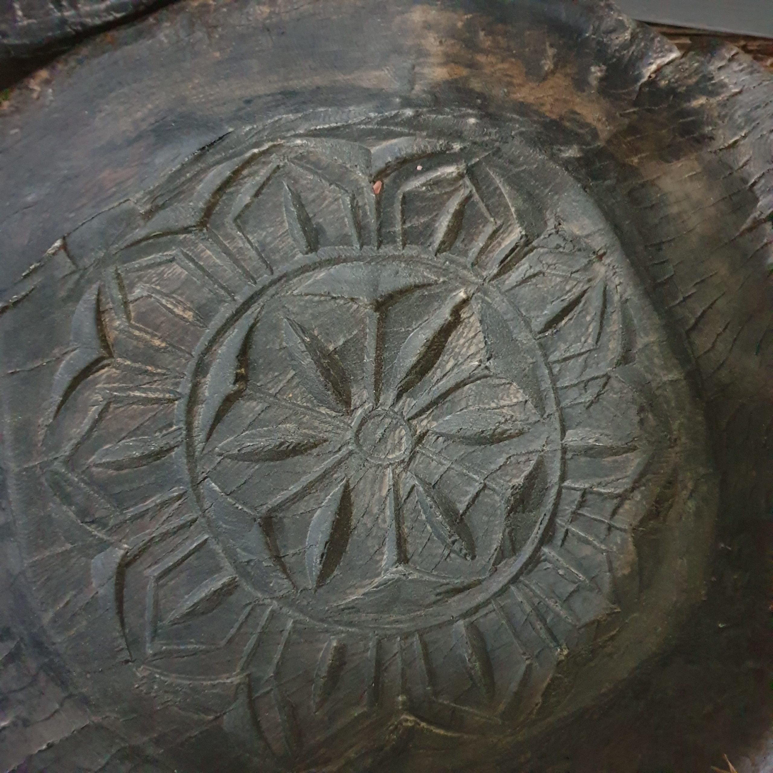 Verweerd chapati bord in zware kwaliteit met handgesneden versieringen in het bord