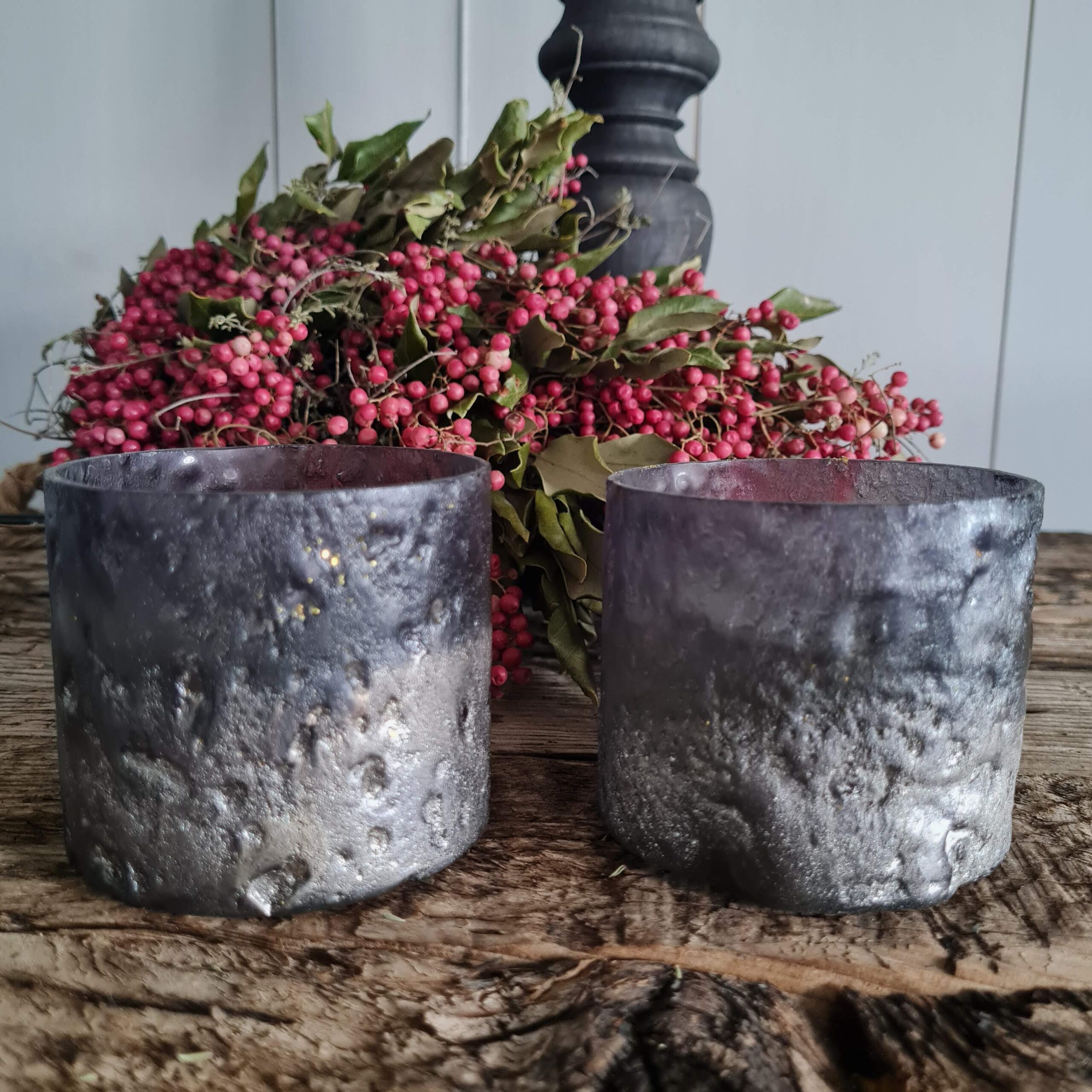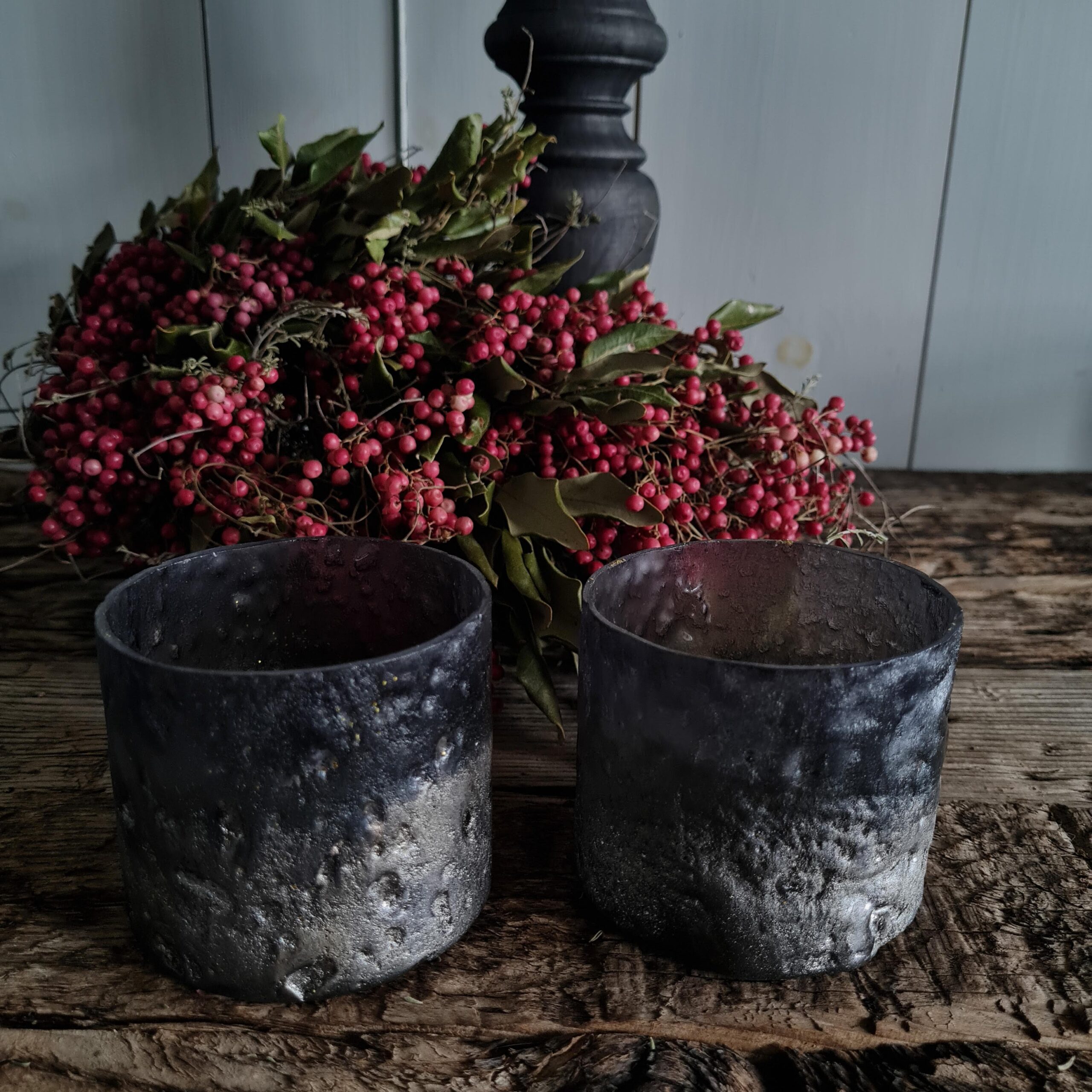 Zeer sfeervol glazen windlichtje in mat zwart met goud en klein glittertje