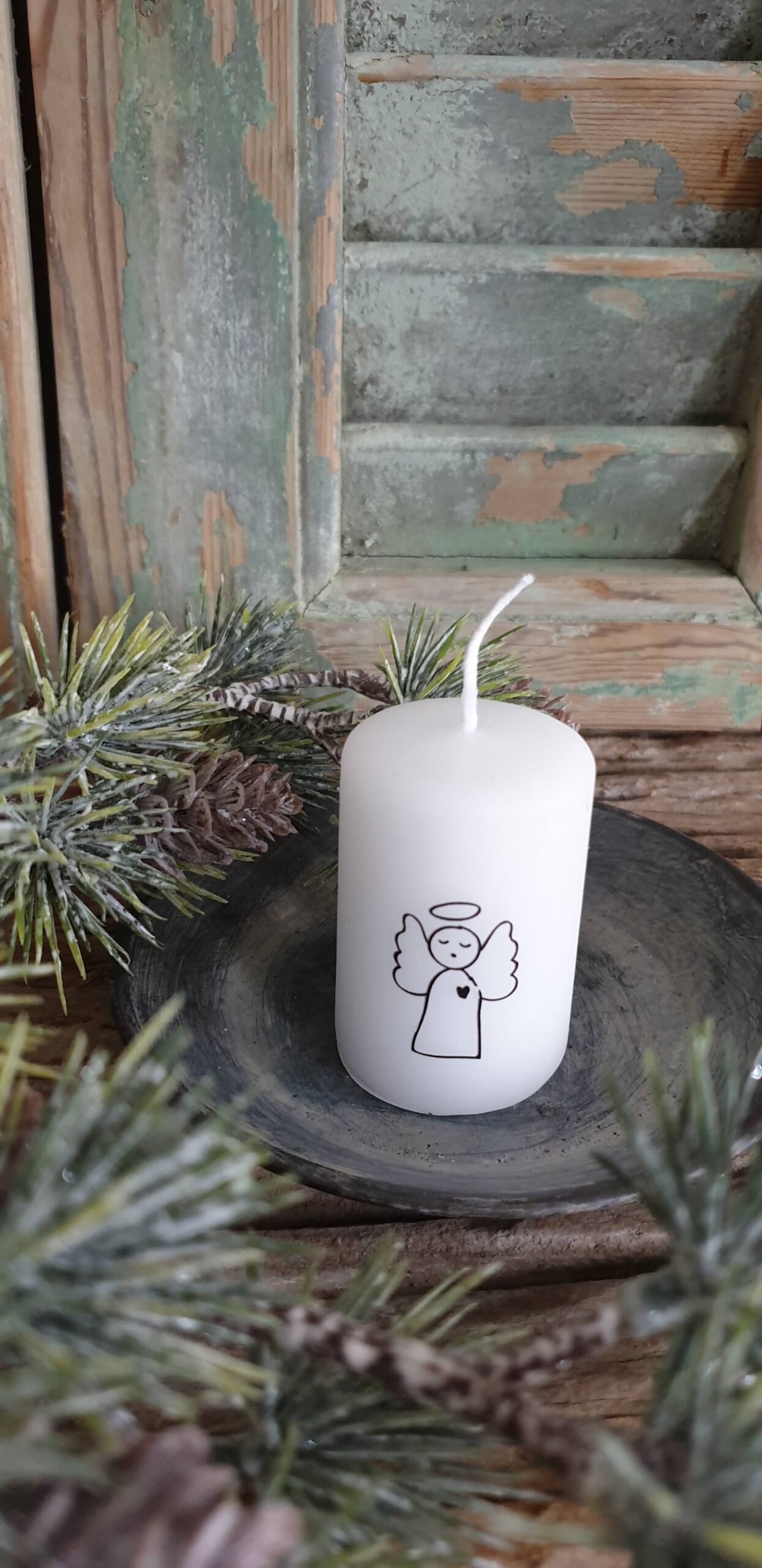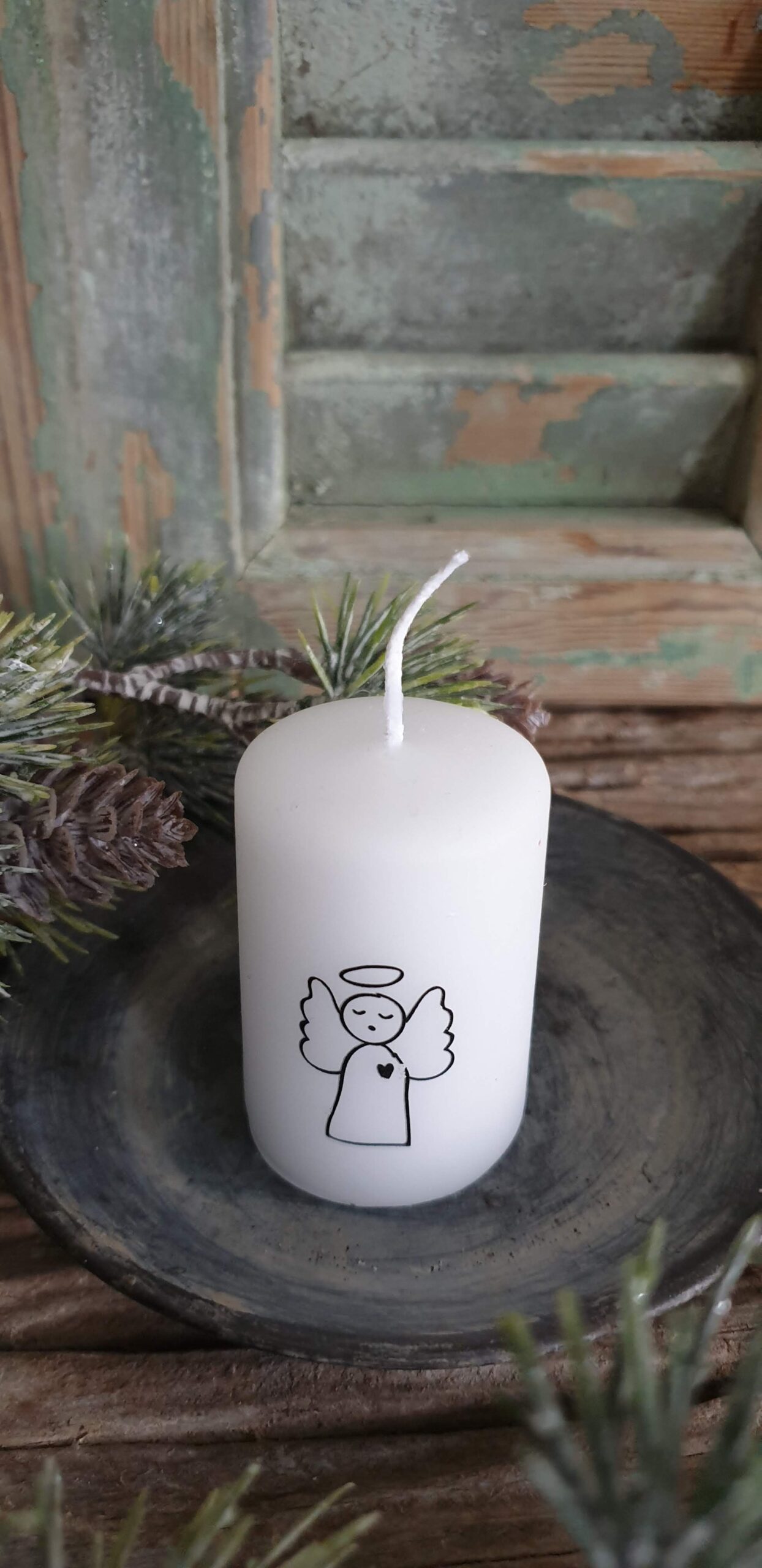 Schattig klein kaarsje met zwarte afbeelding van engeltje