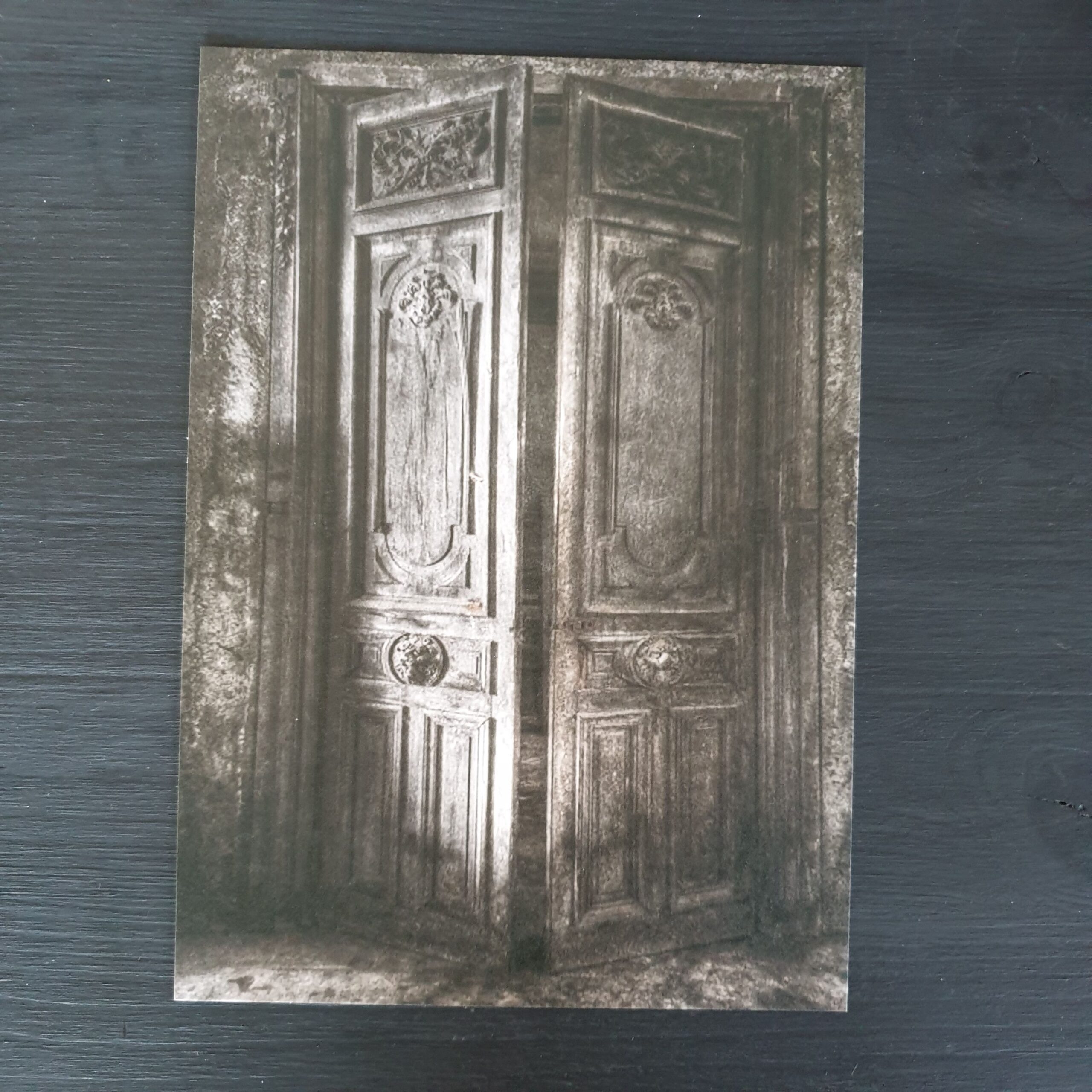 Enkele kaart van 15 x 20 cm afgedrukt in licht sobere tinten op gerecycled zwaar papier.